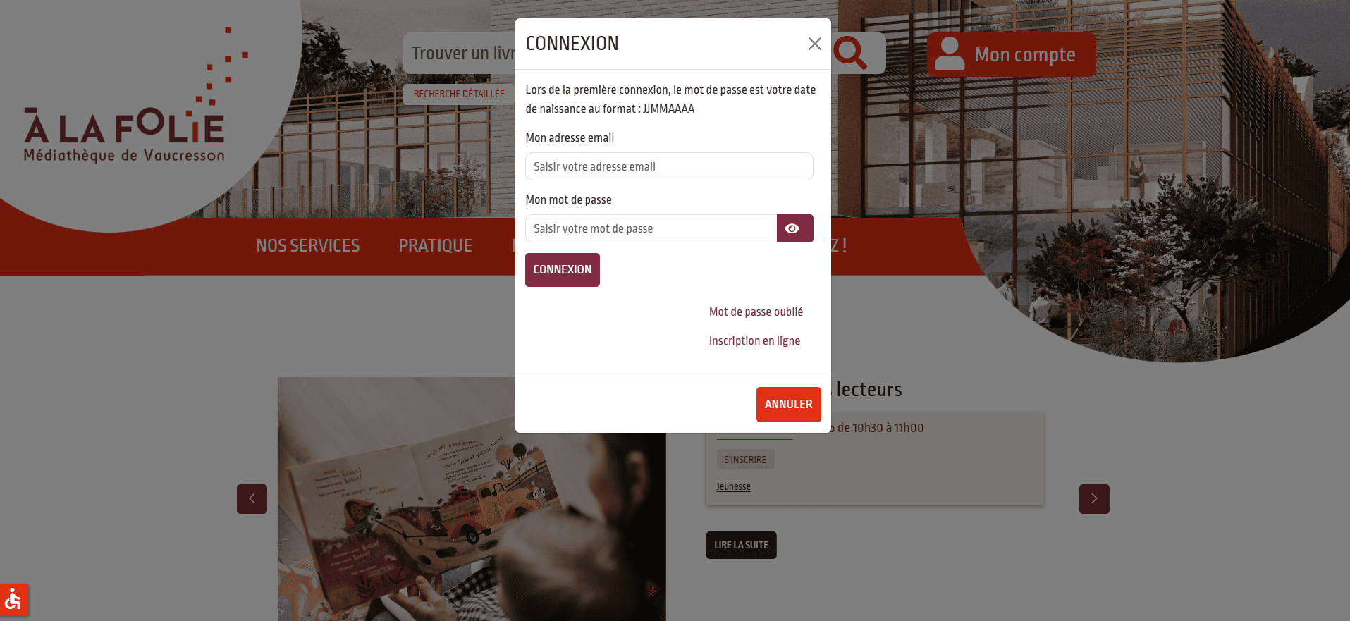 Pour vous connecter, cliquez sur le bouton "Mon compte" en haut à droite de la page et renseignez votre identifiant et votre mot de passe. Si vous n'êtes pas encore inscrit, n'hésitez pas à le faire au plus vite en suivant ce lien.